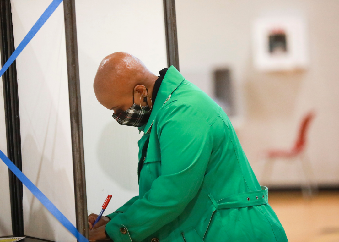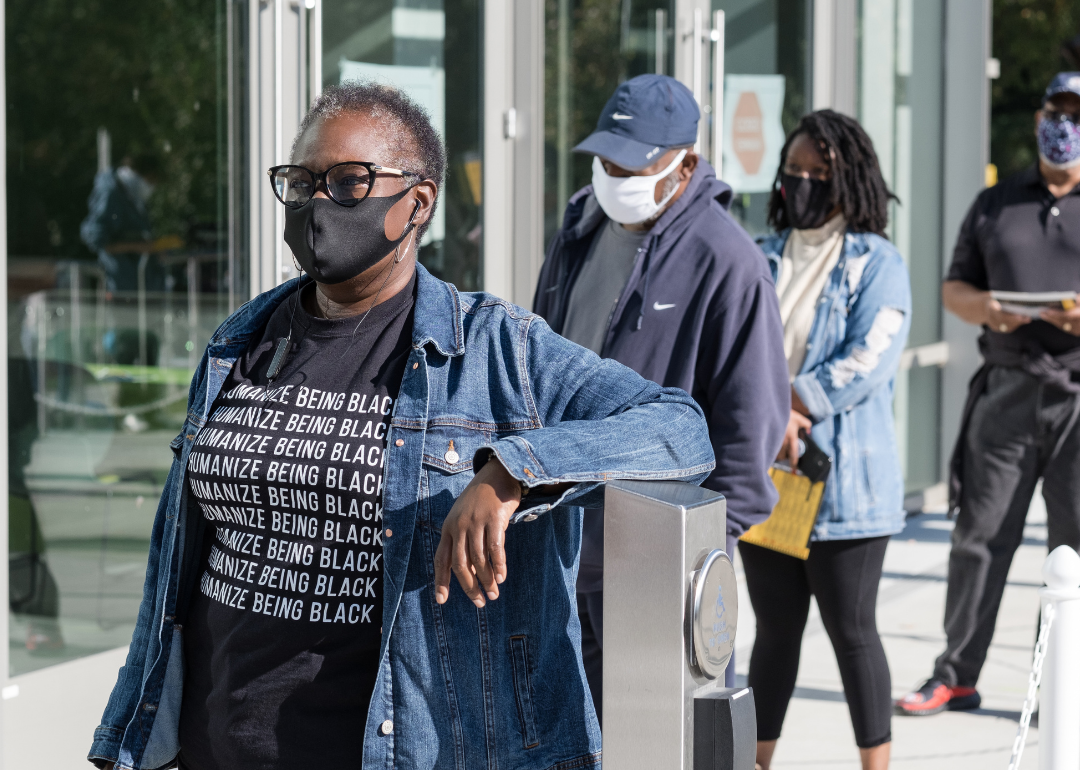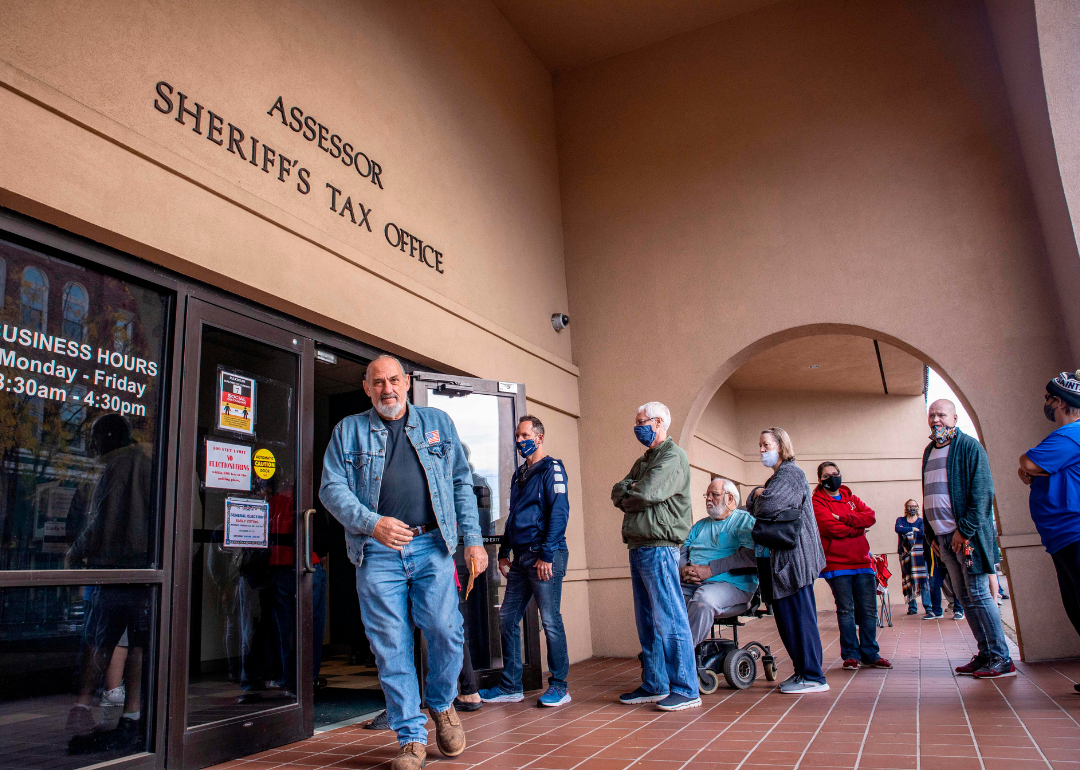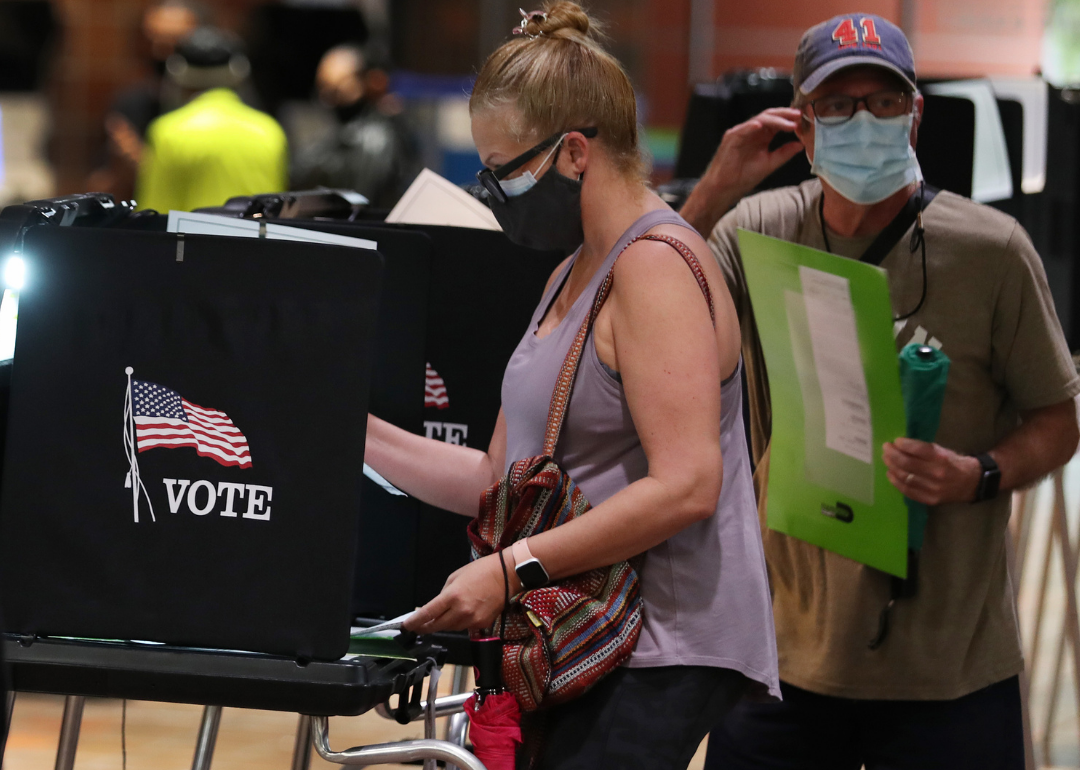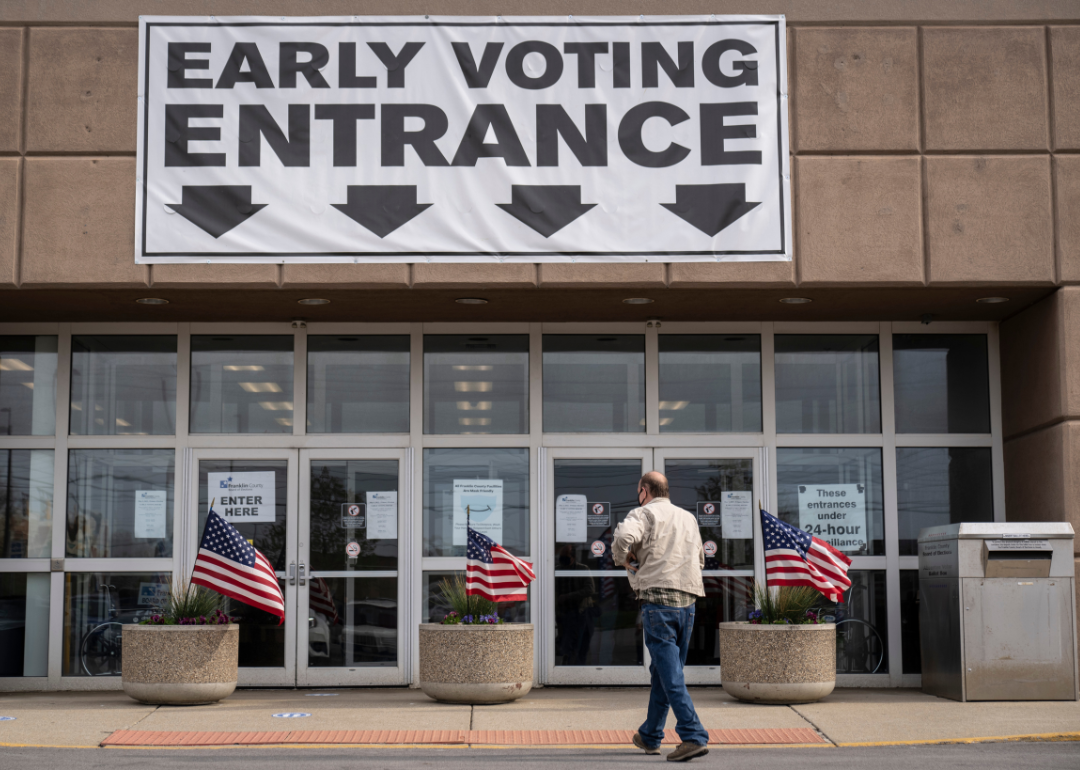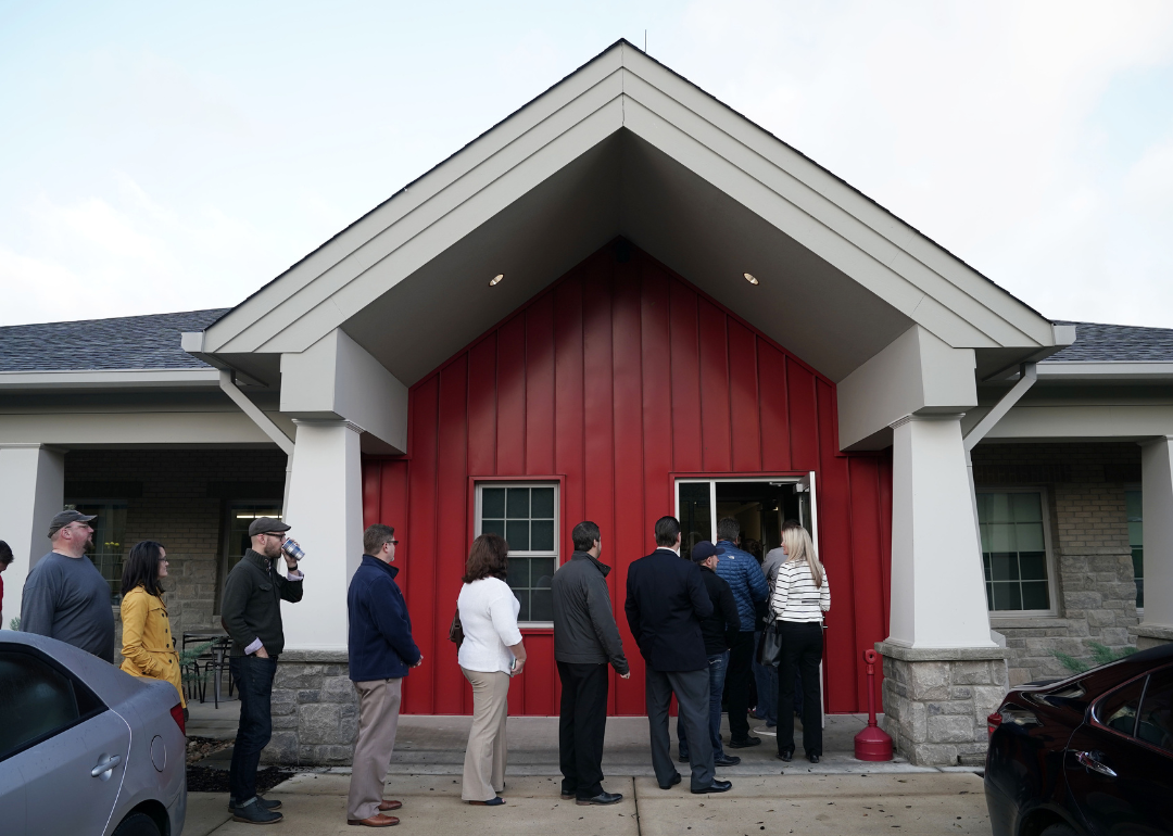 Early voters outside of the Judge Black Annex polling location in Parkersburg, West Virginia