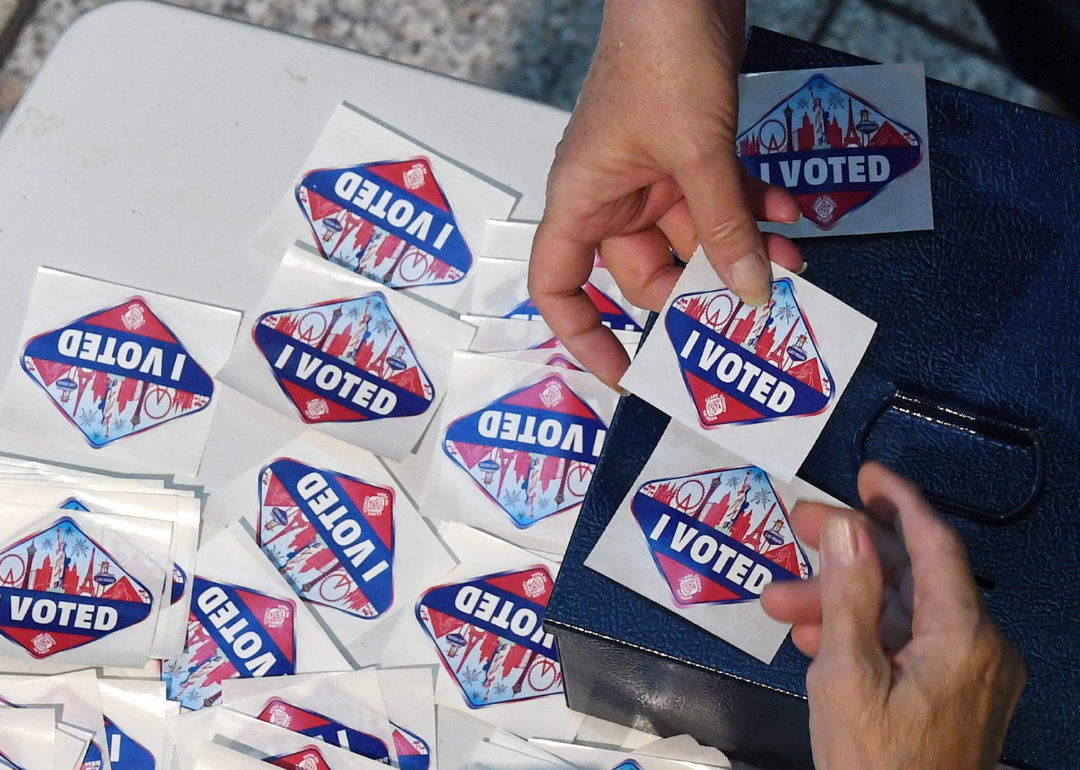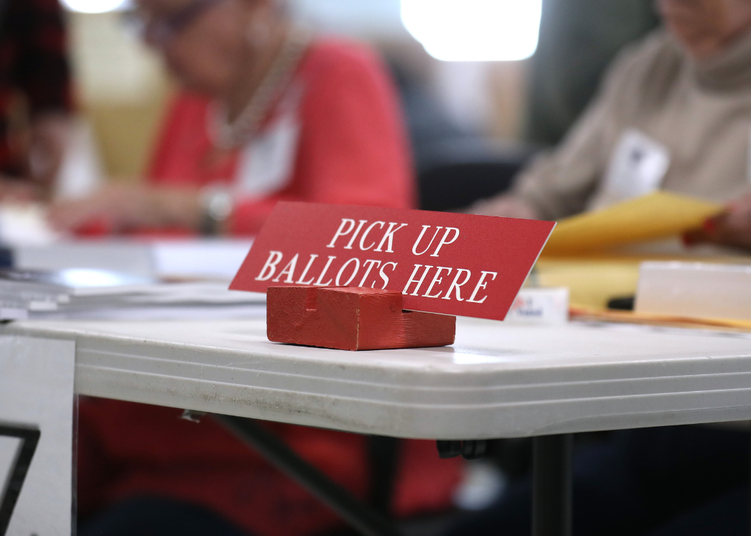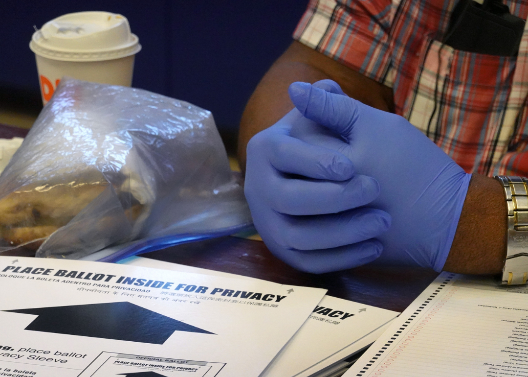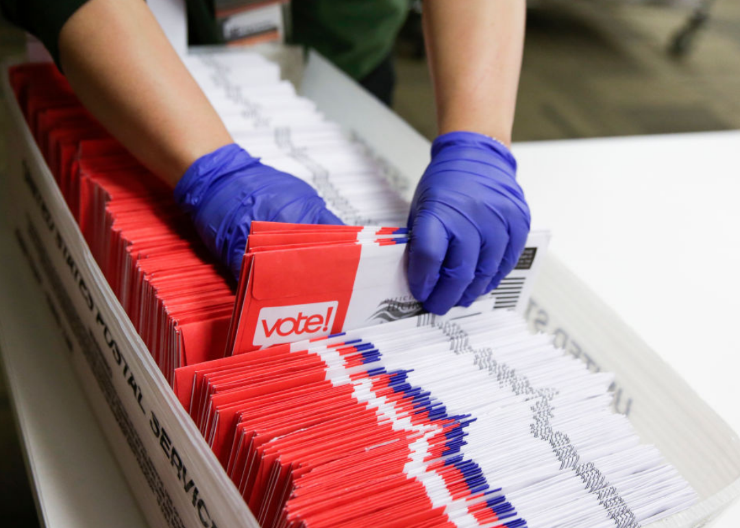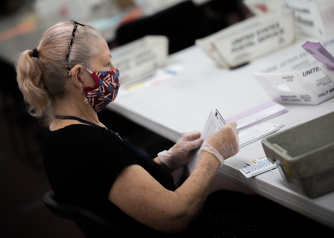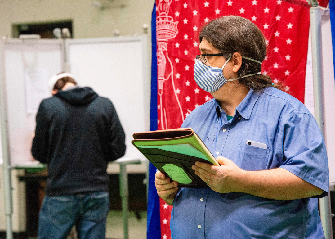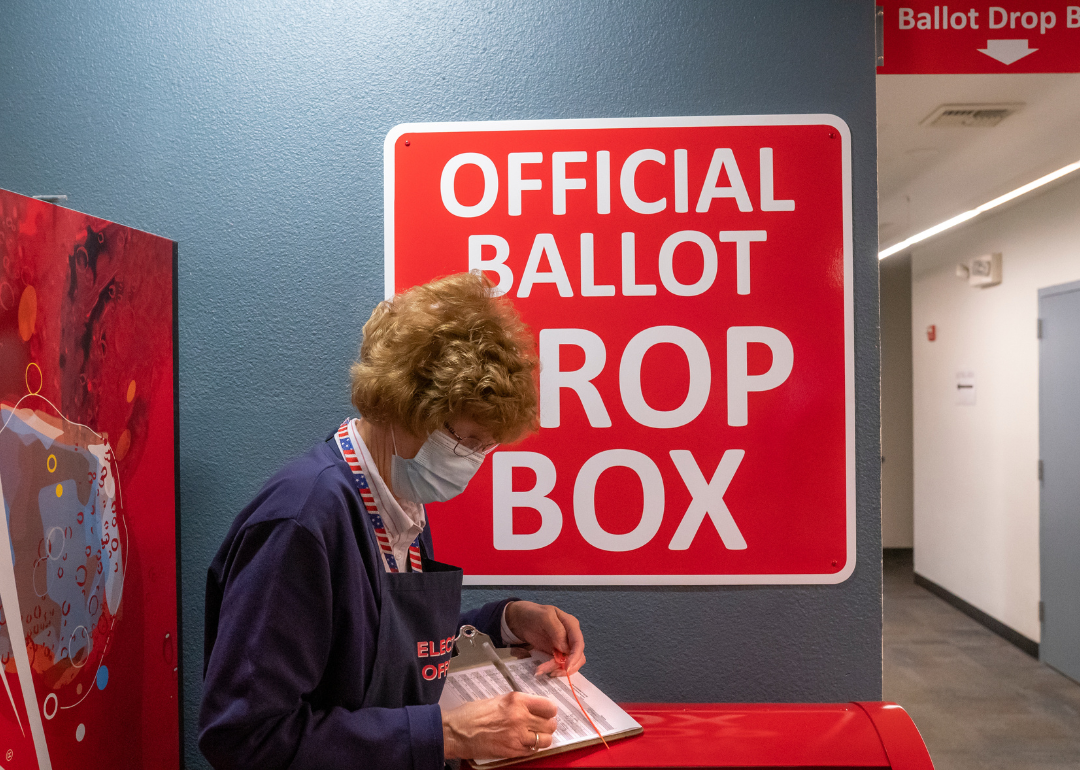 An election worker making a record of a ballot pickup in Vancouver, Washington