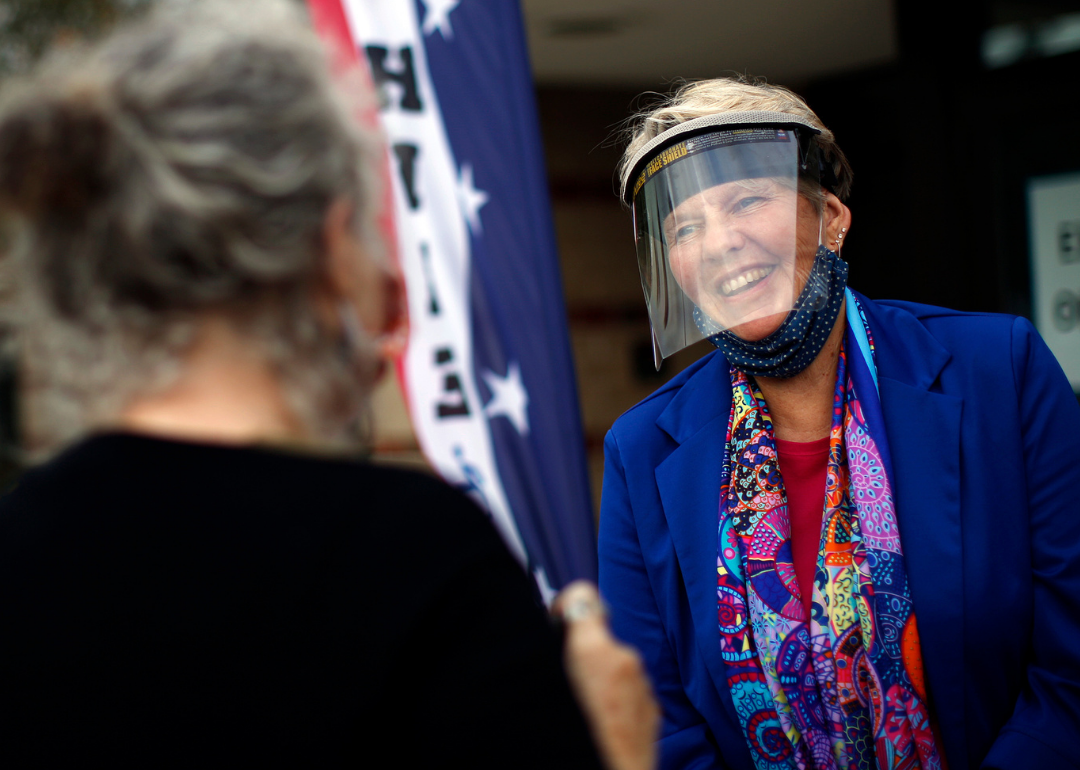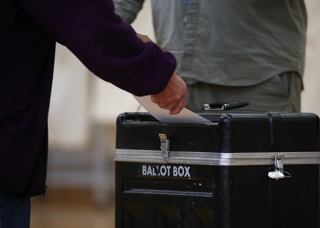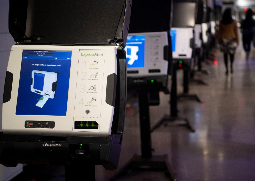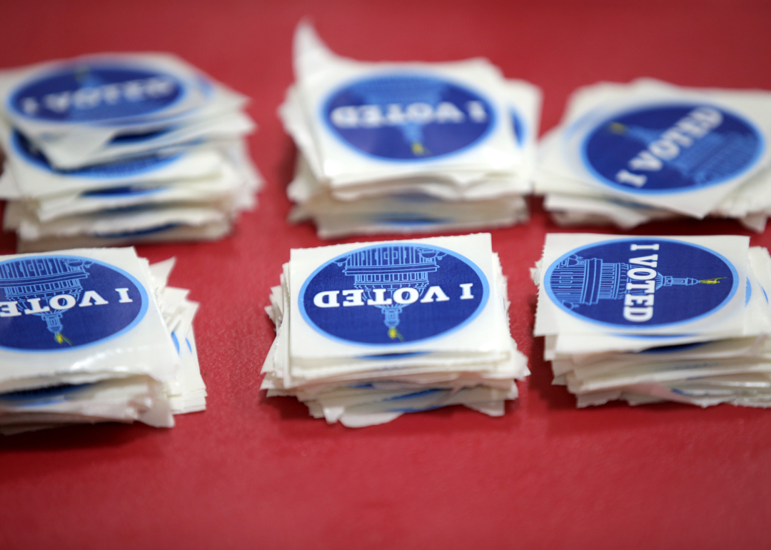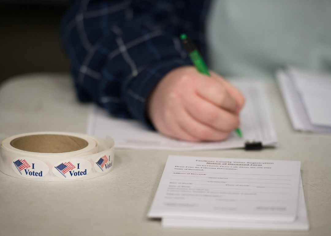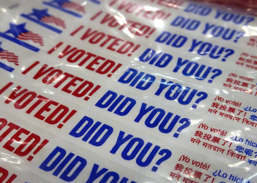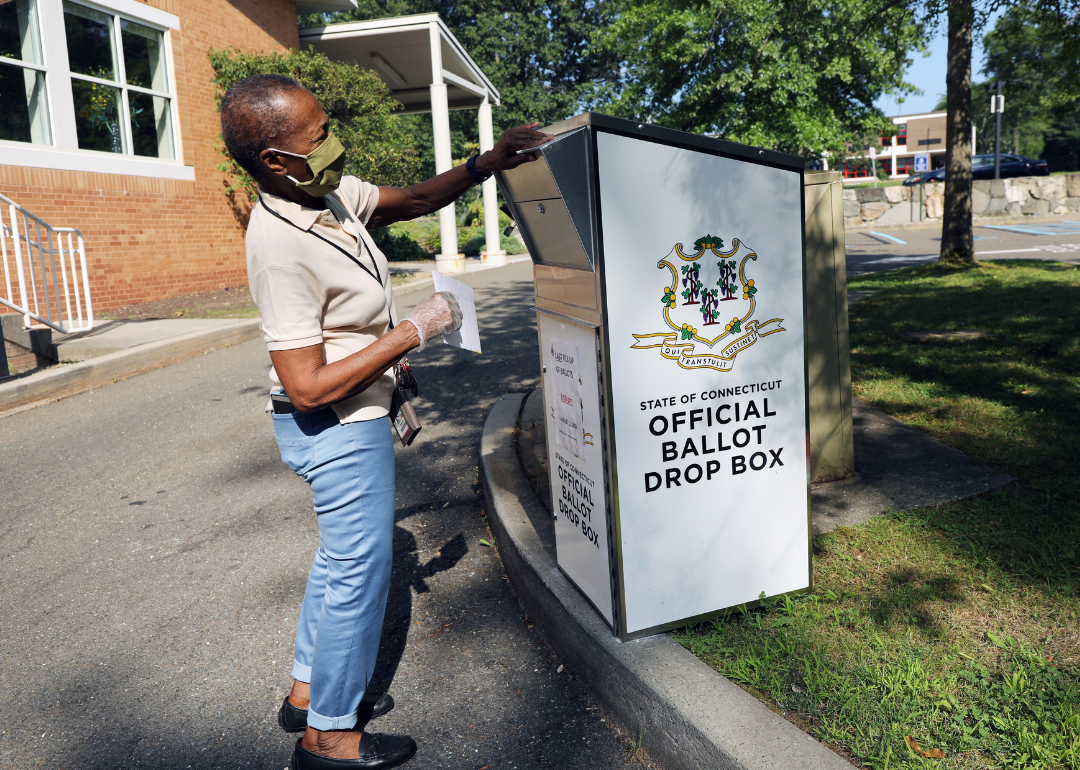 An election worker making a record of a ballot pickup in Vancouver, Washington