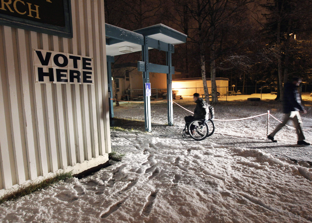 A polling place inside the Robert Miller Community Center in Burlington, Vermont