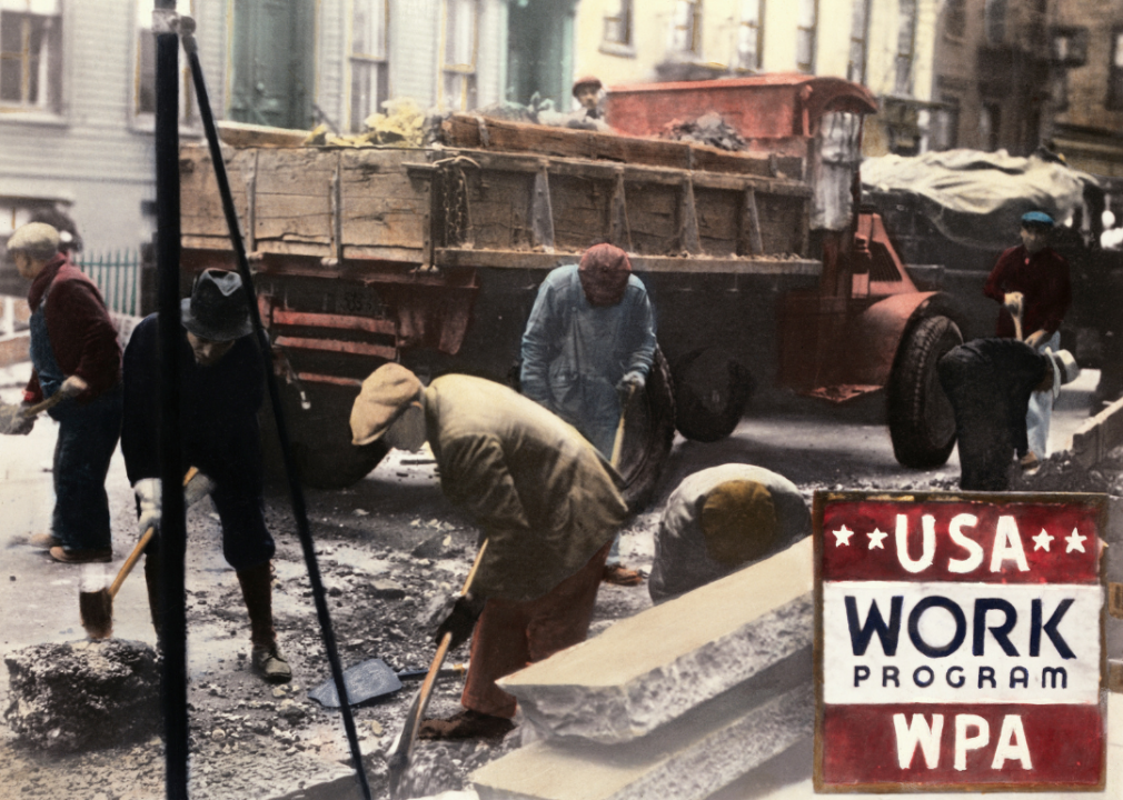 1930s: New Deal infrastructure projects bring construction workers across the country