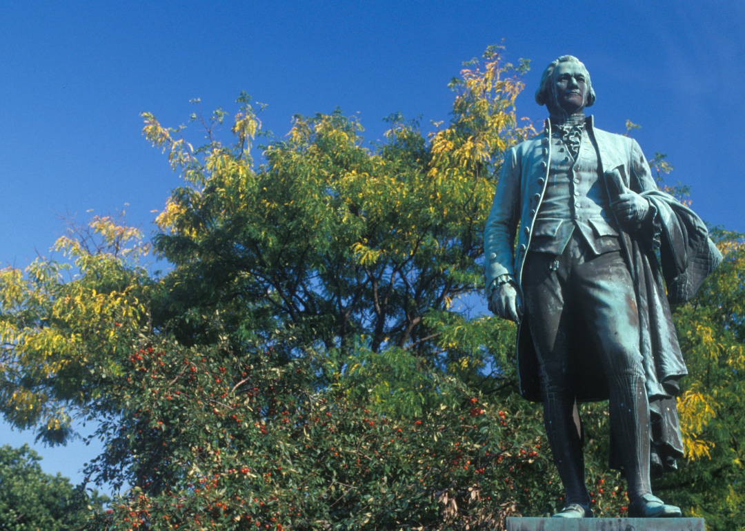 A statue of Alexander Hamilton in Paterson, New Jersey