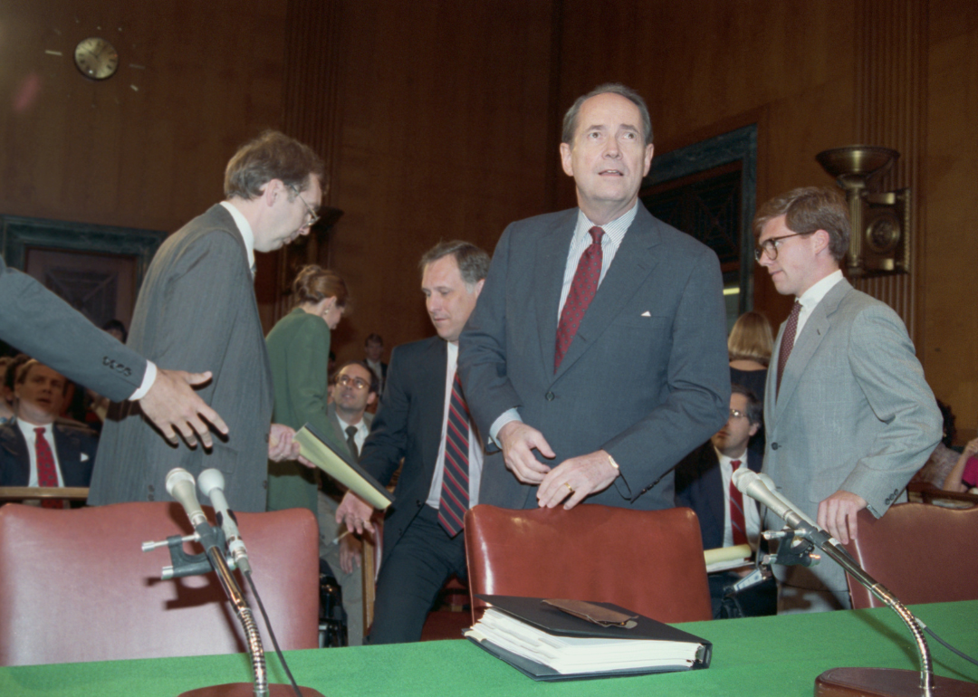 Attorney General Dick Thornburgh preparing to testify before the Senate Judiciary Committee 7/24 on the Savings & Loan crisis