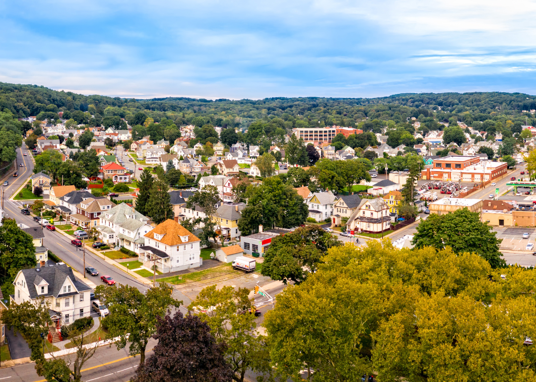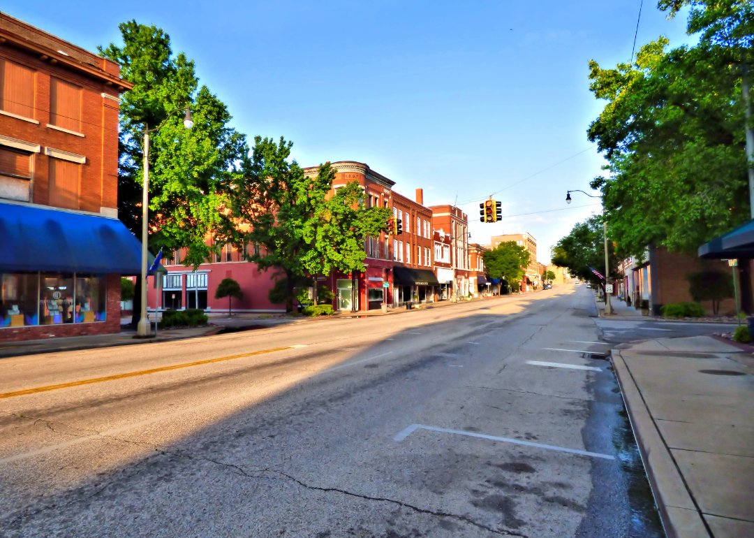 Historic buildings in a small town.