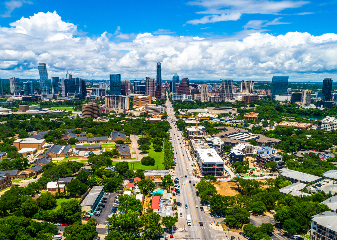 An aerial view of Austin on a sunny day.