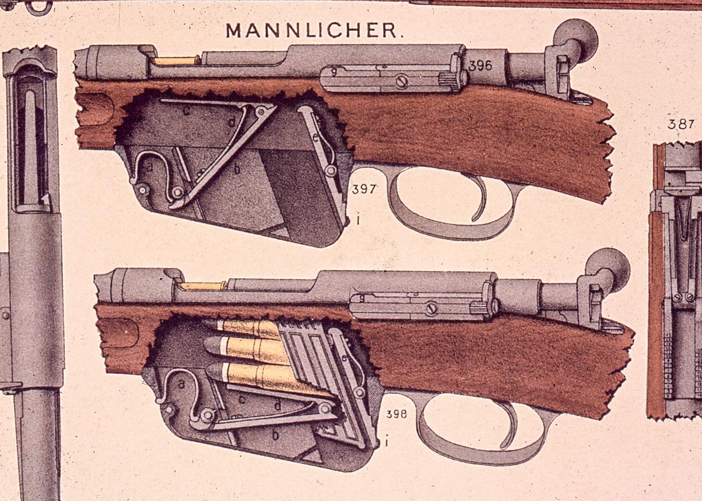 Drawing of the mechanisms in a Mannlicher M1895.