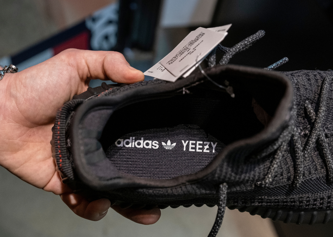 A seller shows off a limited edition Adidas Yeezy Boost 350.