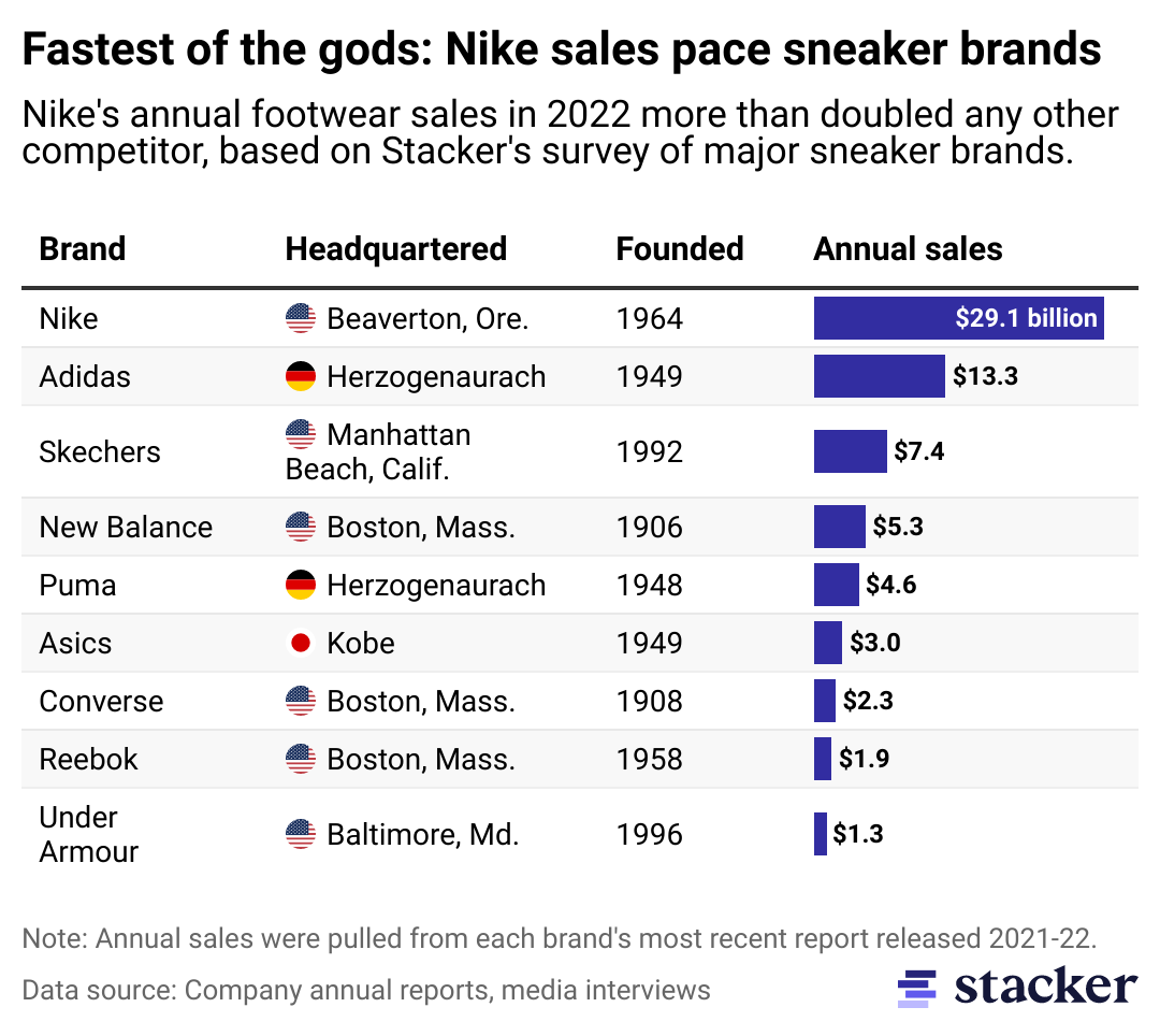 When it comes to athletic shoe brands, Nike is undeniably at the top of the heap. The shoe giant has made many right moves since its inception in 1971—from signing Michael Jordan to its creative campaigns such as “Just Do It,” which has now become a rallying cry for more than just athletes.
