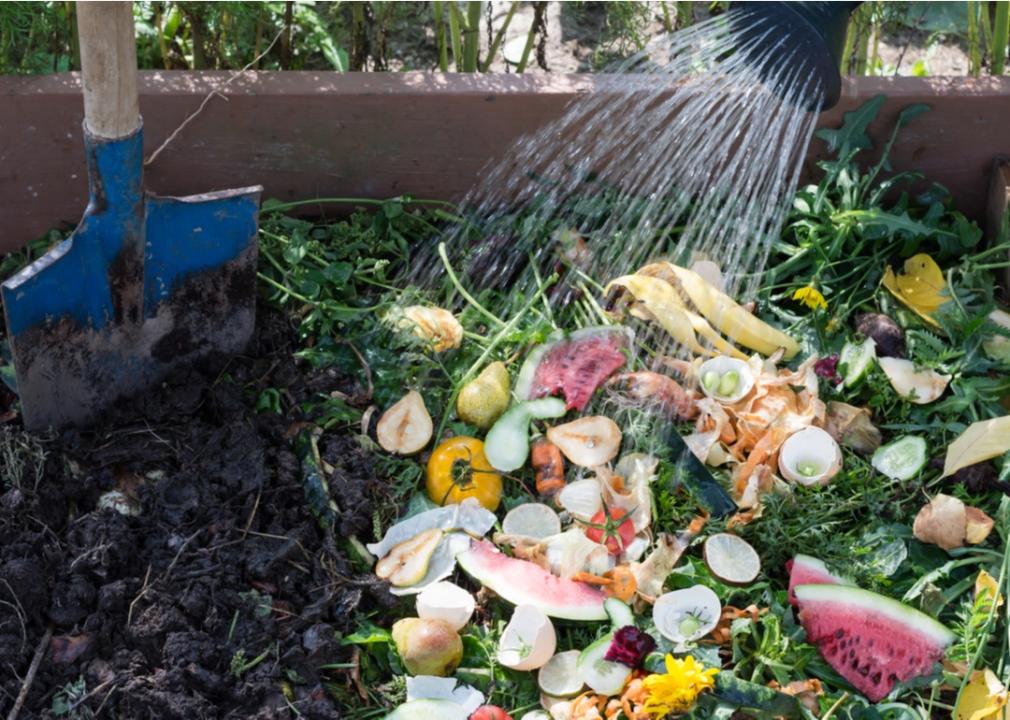 Water helps with keeping the temperature of the pile regulated and it also helps with decomposition. If you have too much water, the pile might decompose too quickly and smell; not enough water, and the compost may not break down quickly enough.