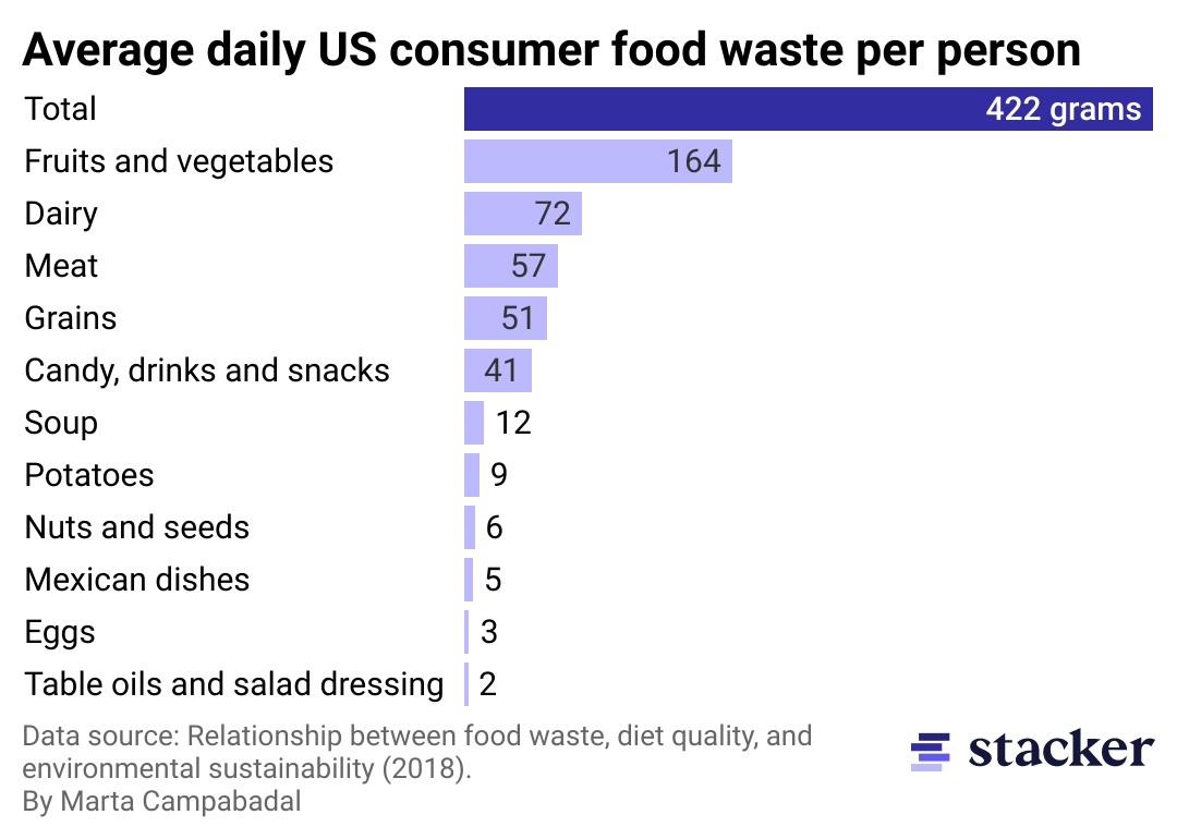 Food loss and waste per person increased over the last decade and tripled since 1960. Fruits and vegetables are among the foods that go to waste most often, and the consumption stage—typically at home or in restaurants—is responsible for approximately half of that waste.