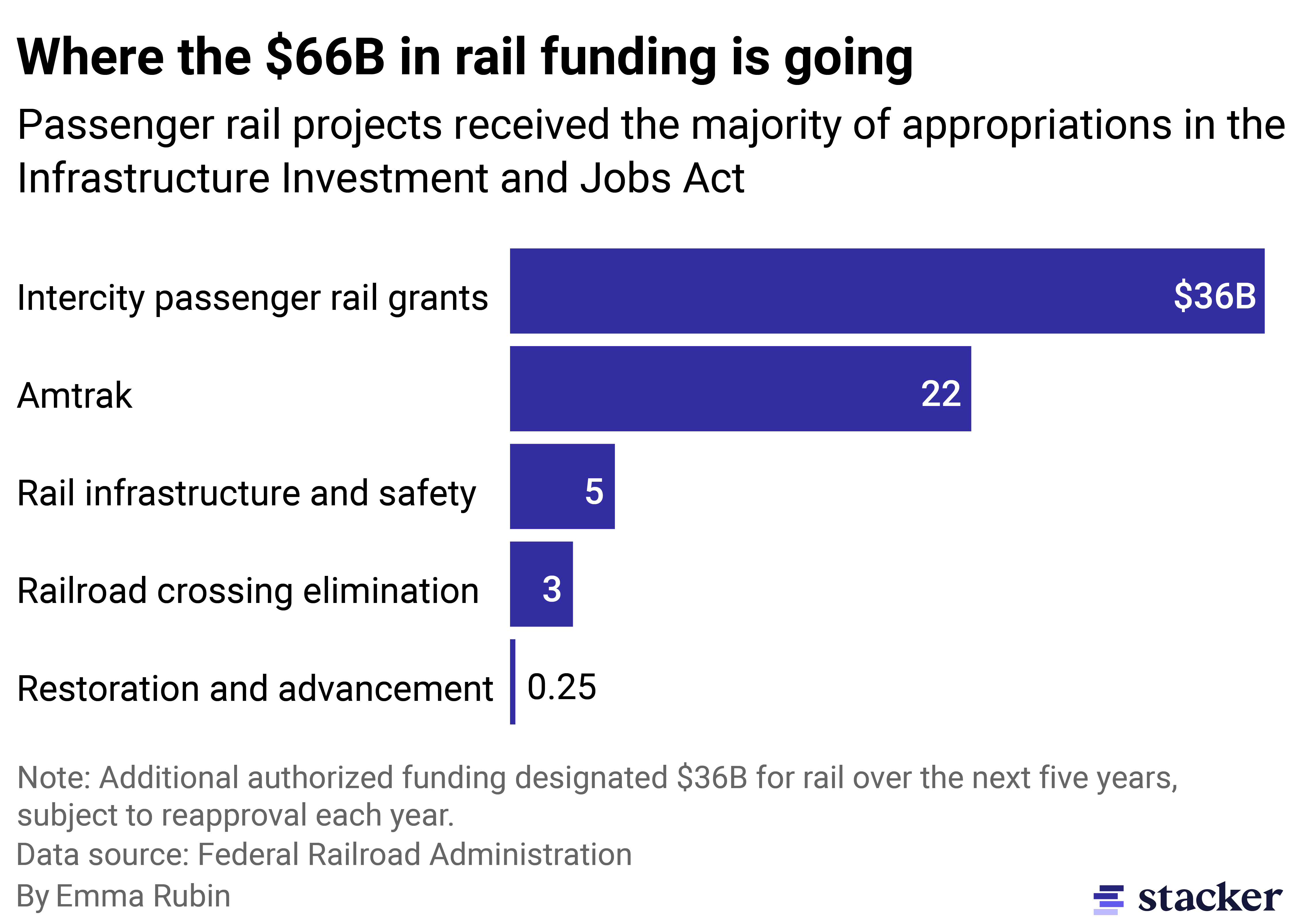 Bar chart of infrastructure bill’s rail funding