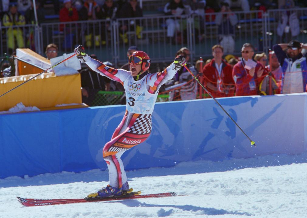 Austrian Hermann Maier shocked the world at the 1998 Nagano Olympics when he came back to compete after a harrowing downhill crash that sent him through three safety nets at an estimated 80 m.p.h. Maier avoided serious injury and days later won gold medals in the slalom and super-G events.