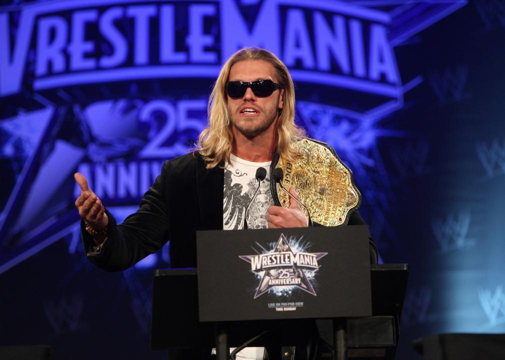 Wrestler Edge attends the WrestleMania 25th anniversary press conference
