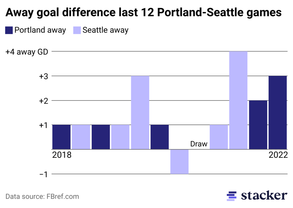 Over the last 12 meetings, the away team in the Portland-Seattle rivalry has a +17 goal difference