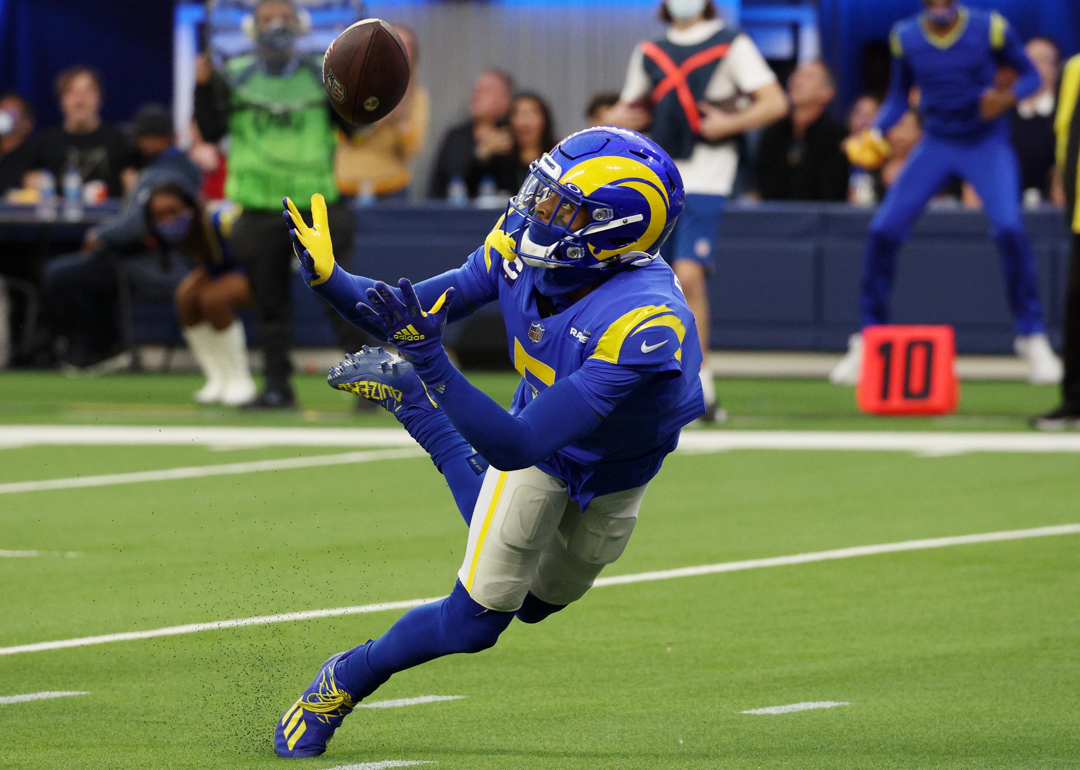 Jalen Ramsey of the Los Angeles Rams catches a ball