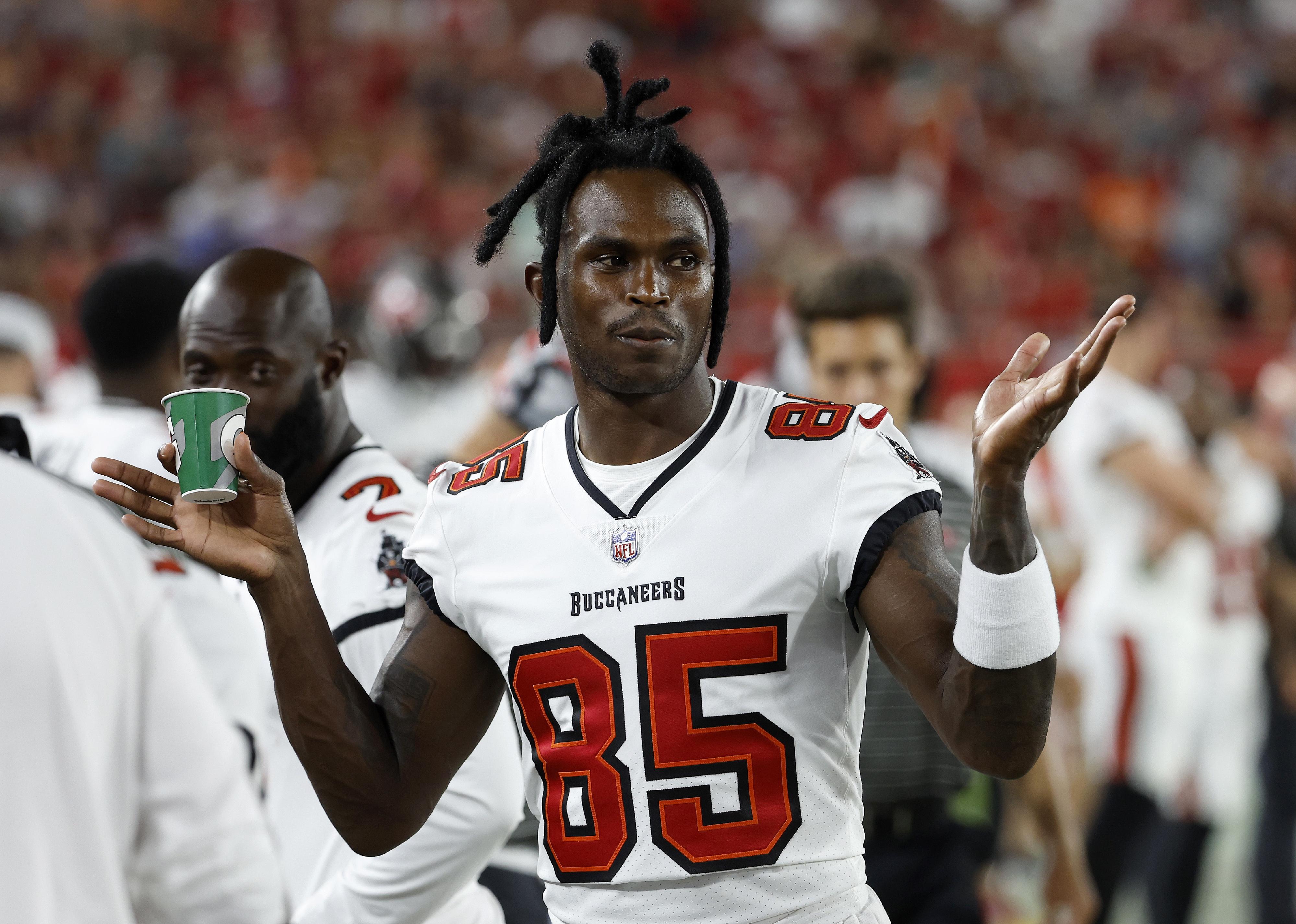 Julio Jones of the Tampa Bay Buccaneers looks on during a preseason game