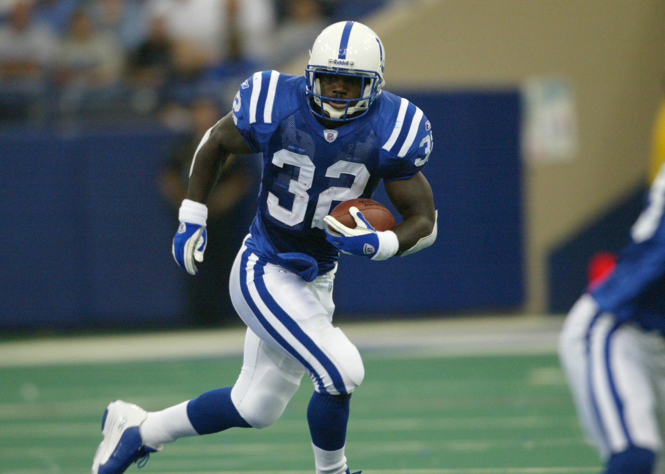 Edgerrin James of the Indianapolis Colts runs with the ball during a game