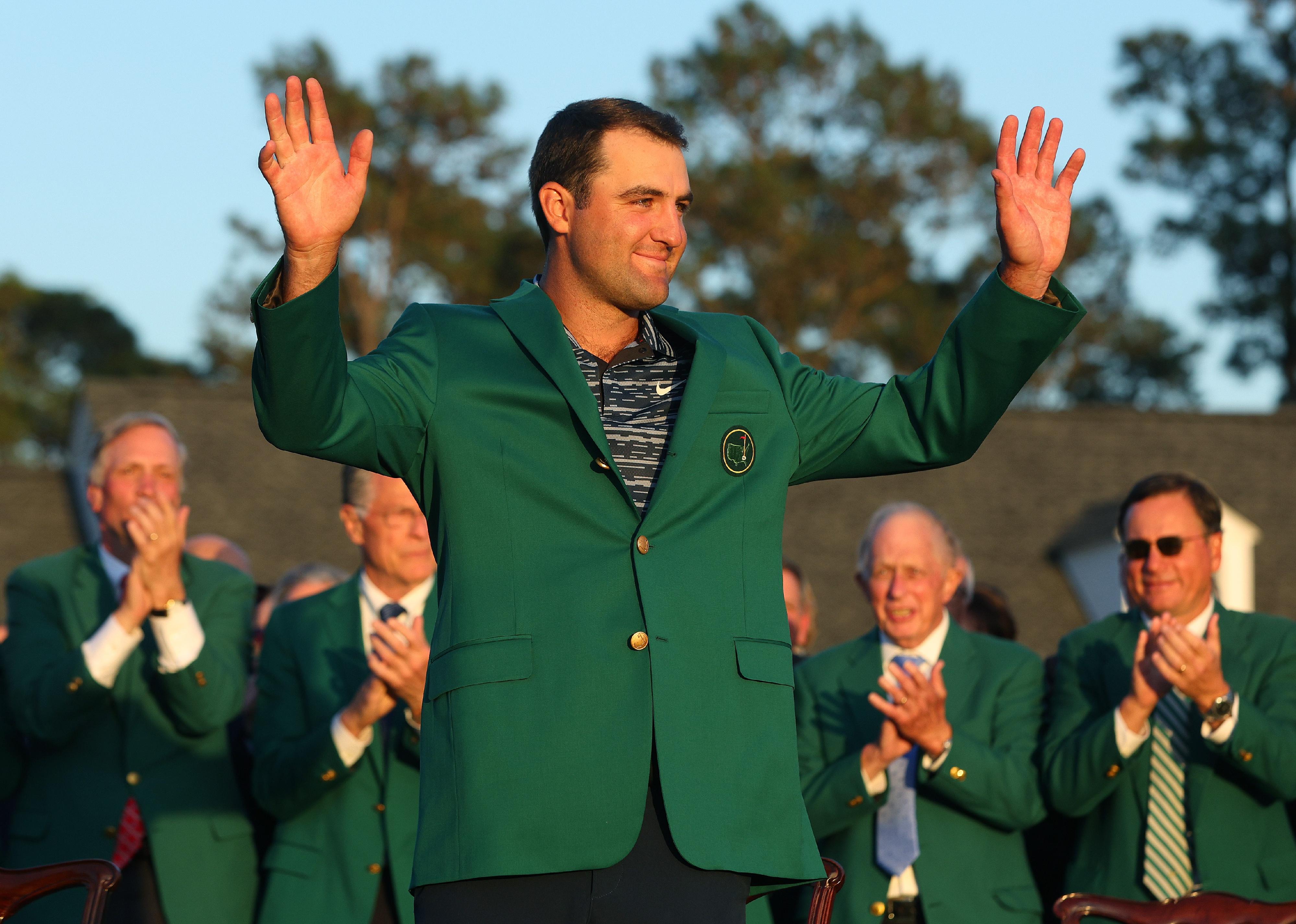 Scottie Scheffler celebrates after being awarded the Green Jacket