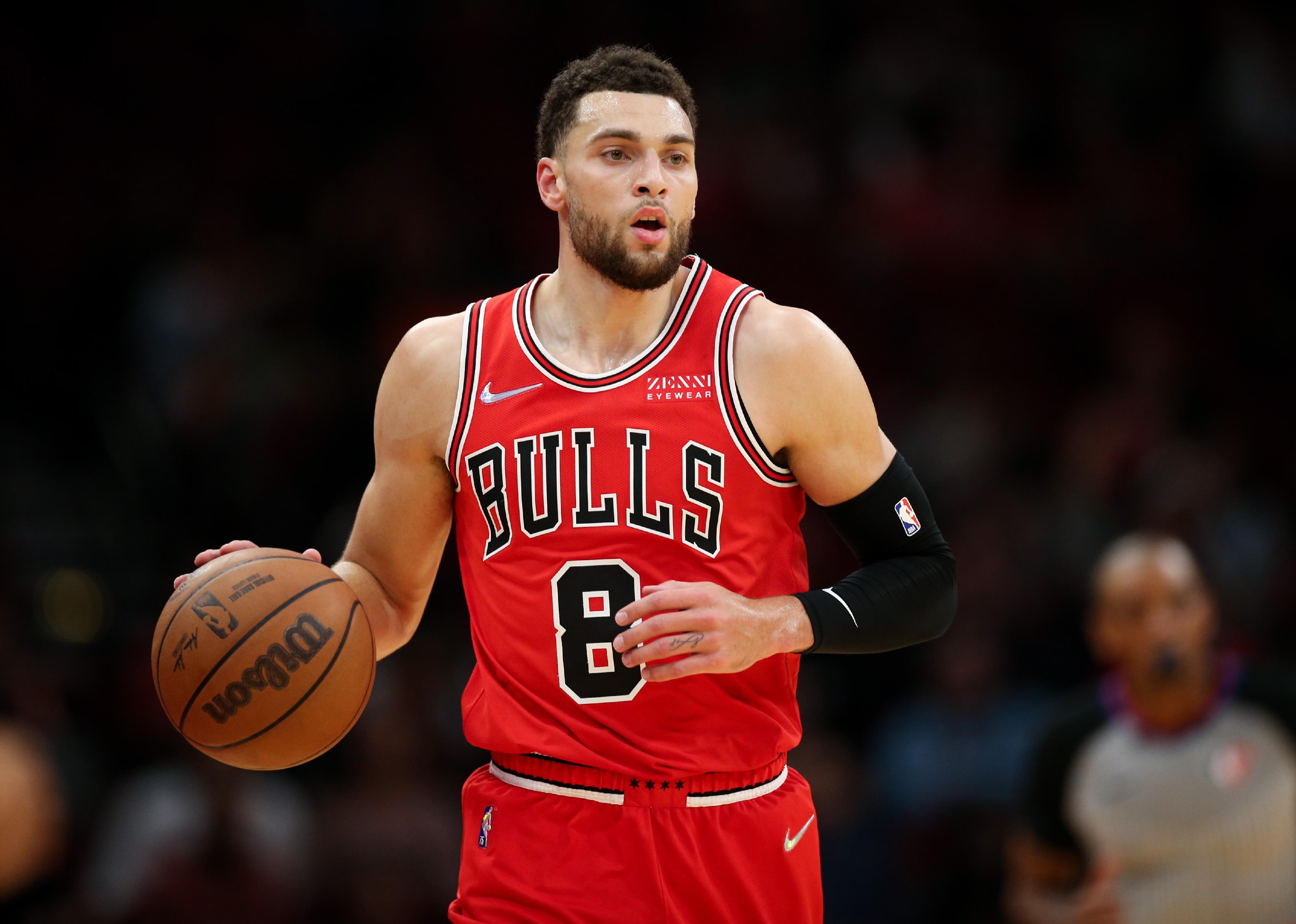 Zach LaVine of the Chicago Bulls controls the ball during a game