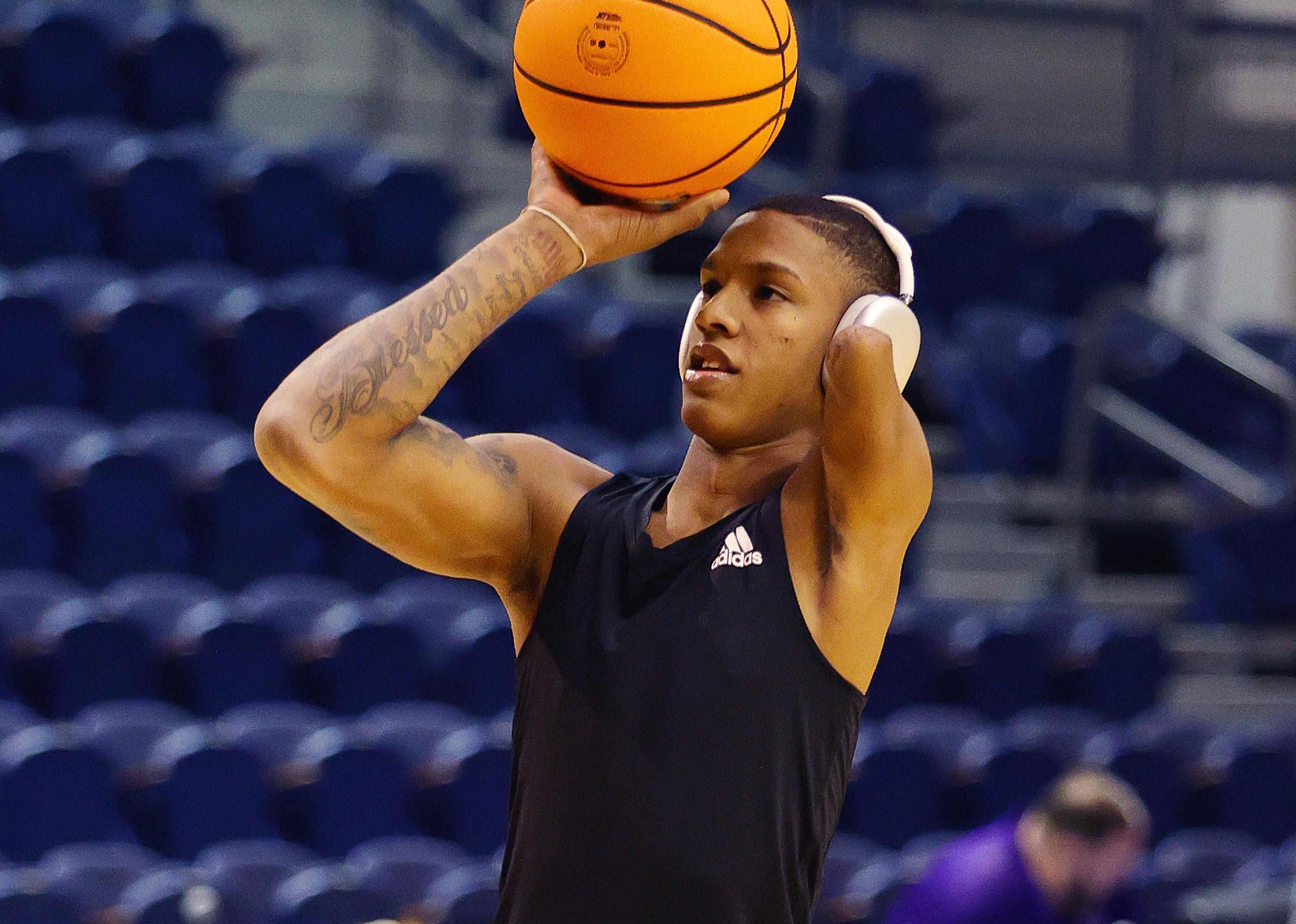 Hansel Enmanuel of the Northwestern State Demons warms up before a game.