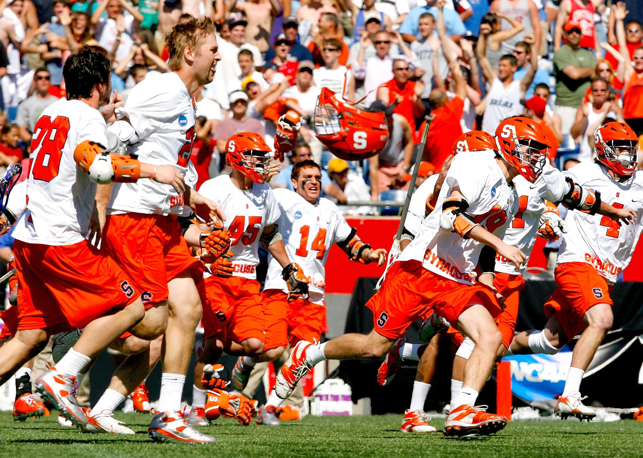 Syracuse Orange celebrates after defeating the Cornell Big Red.