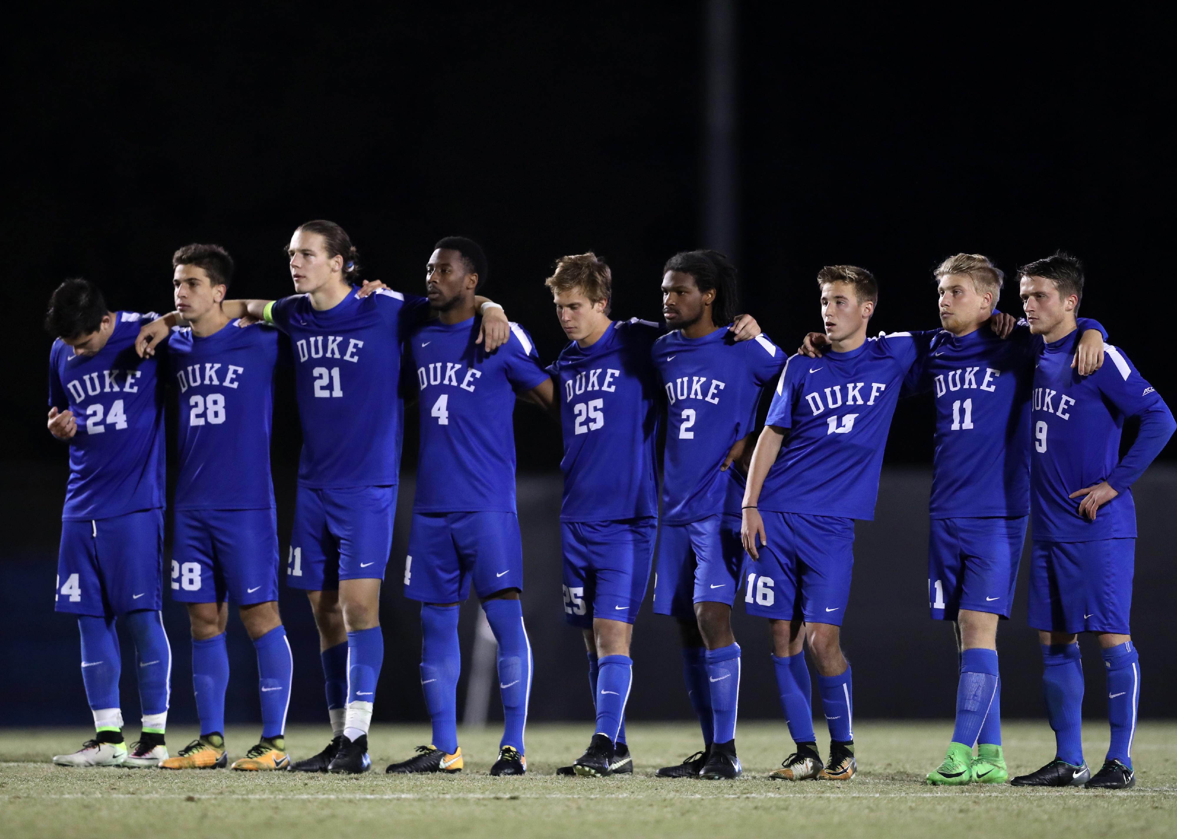 Duke players during a penalty kick shootout.