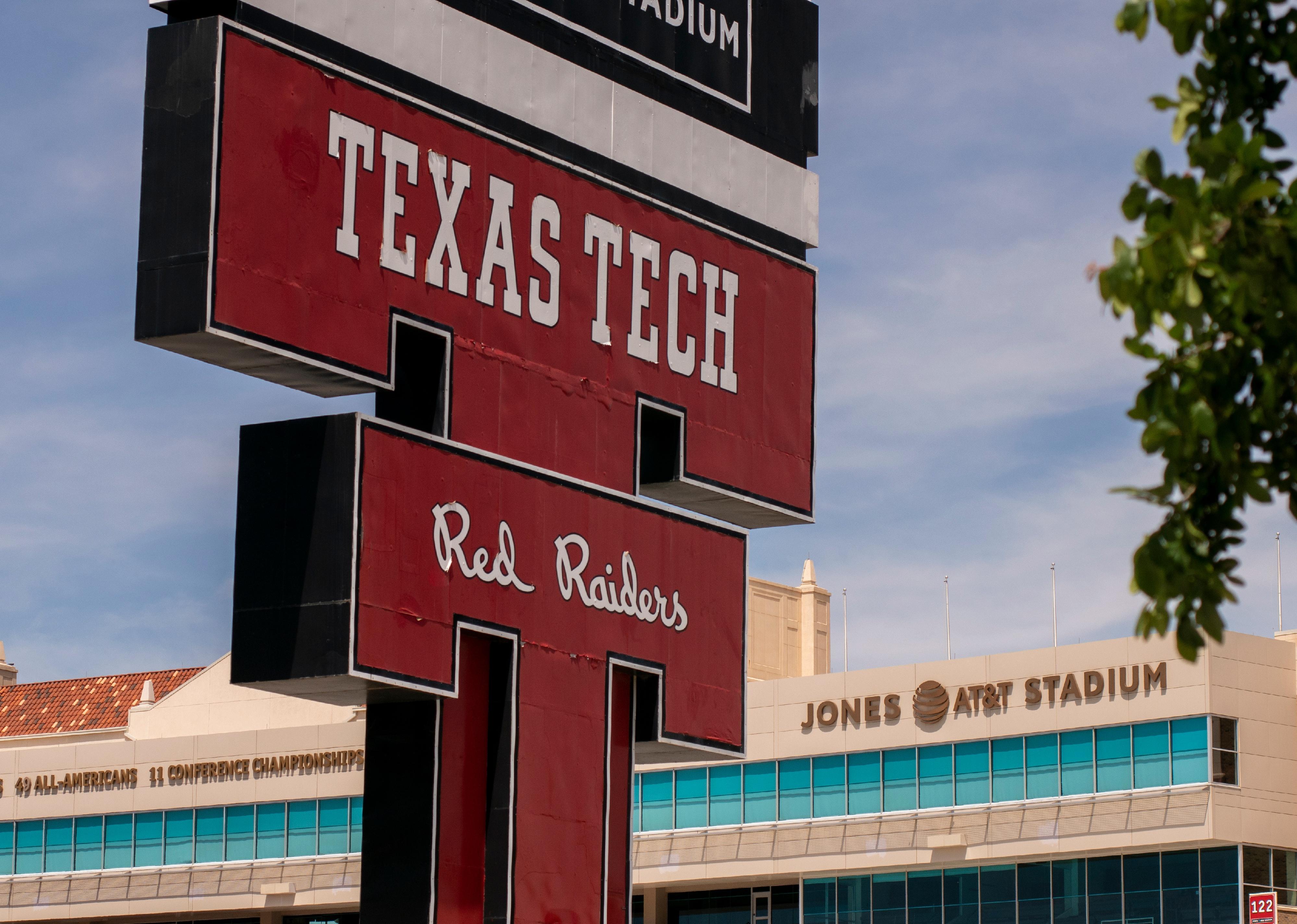 Texas Tech University sign and Red Raiders logo.