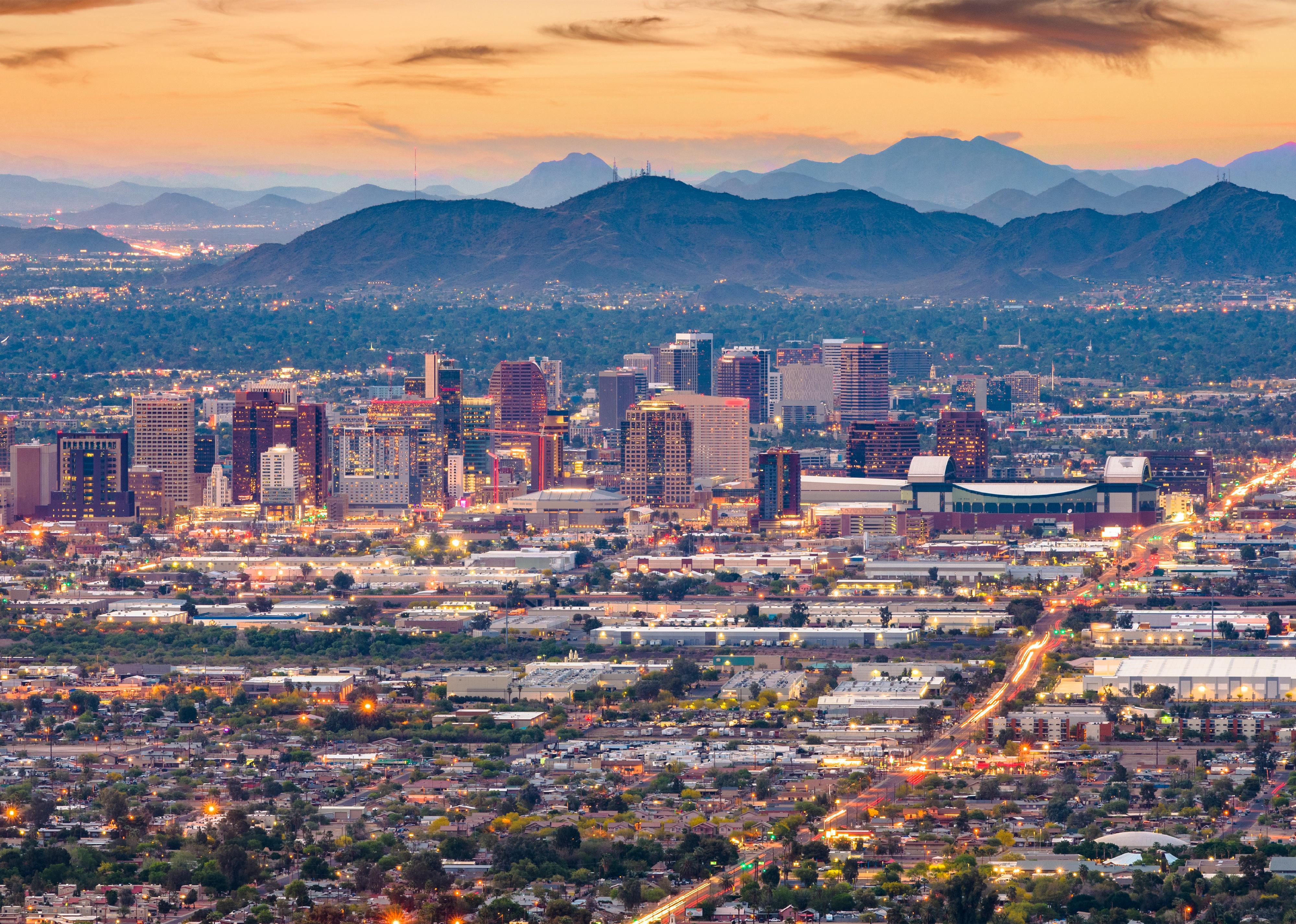 View of downtown Phoenix at dusk.
