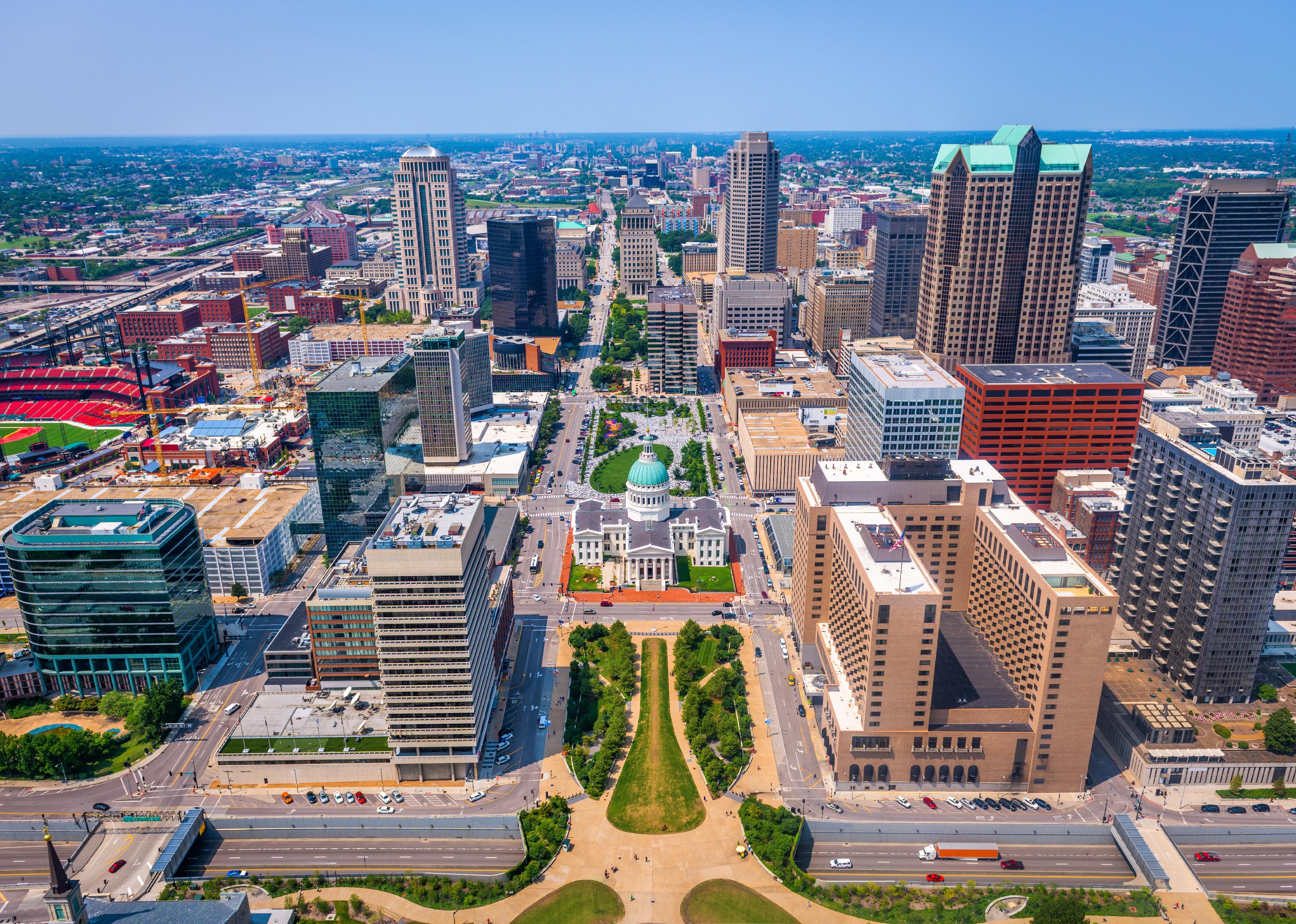 Aerial view of downtown St. Louis.