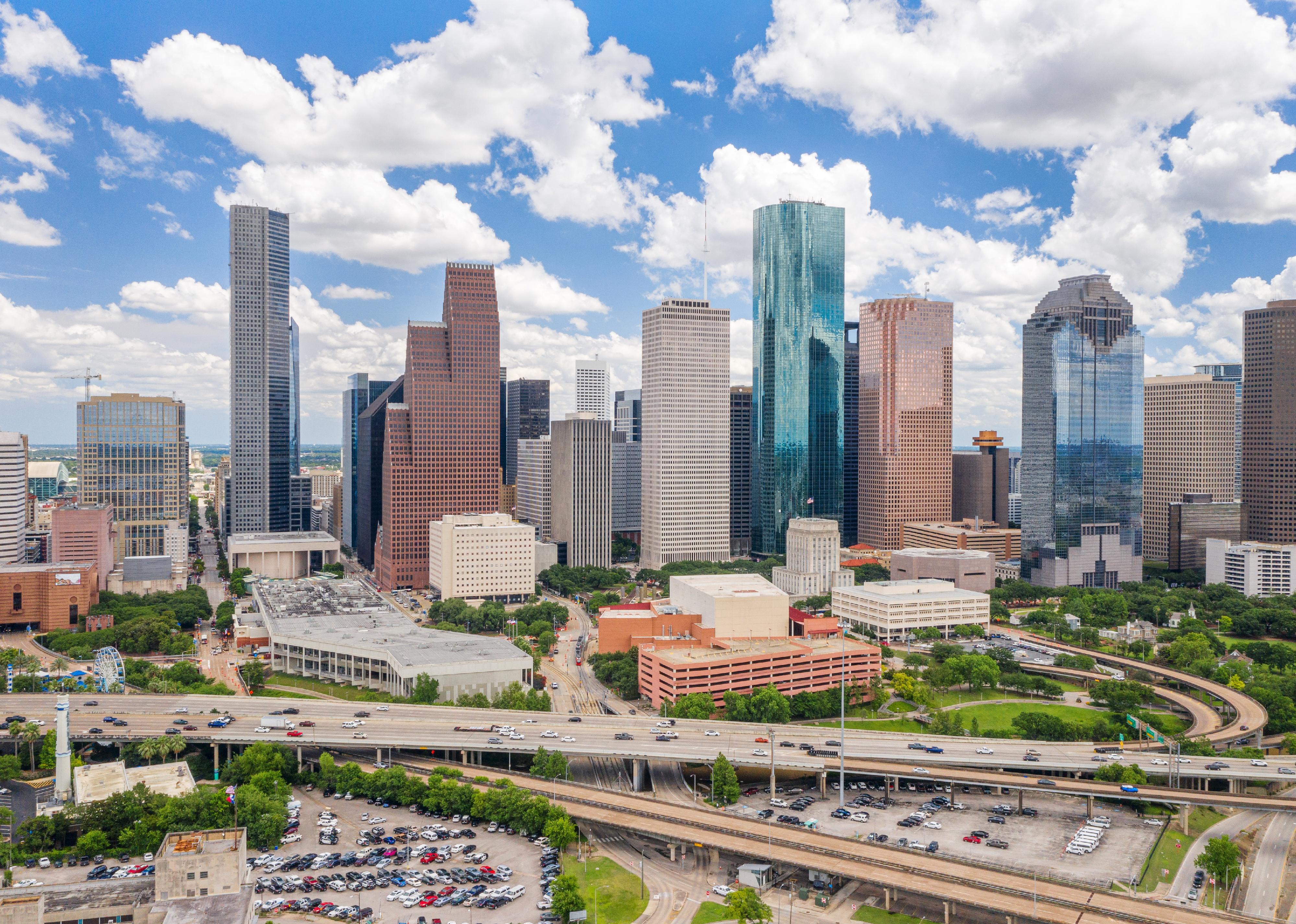 Sky drone view of downtown Houston.