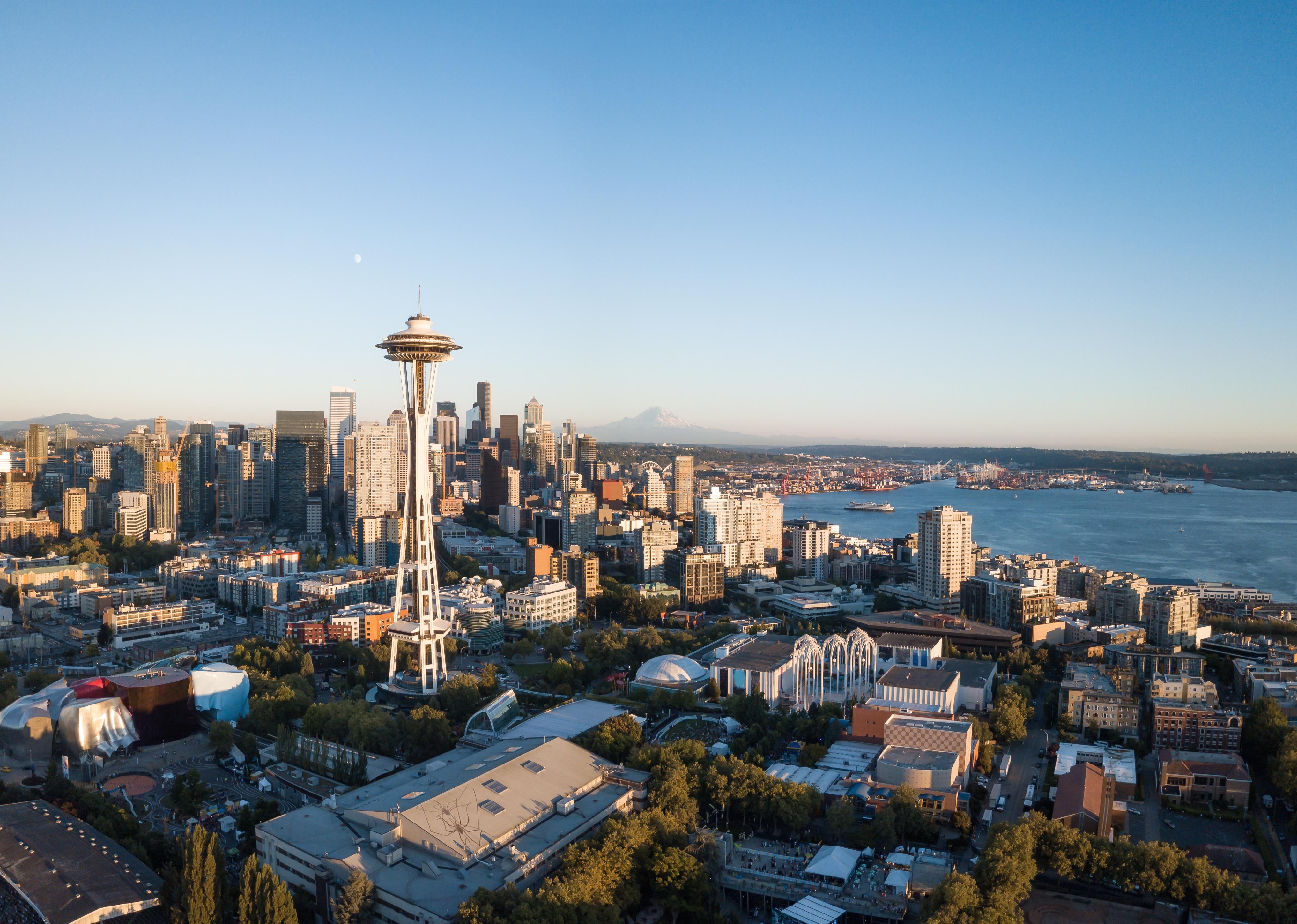 Aerial view of Seattle city skyline.