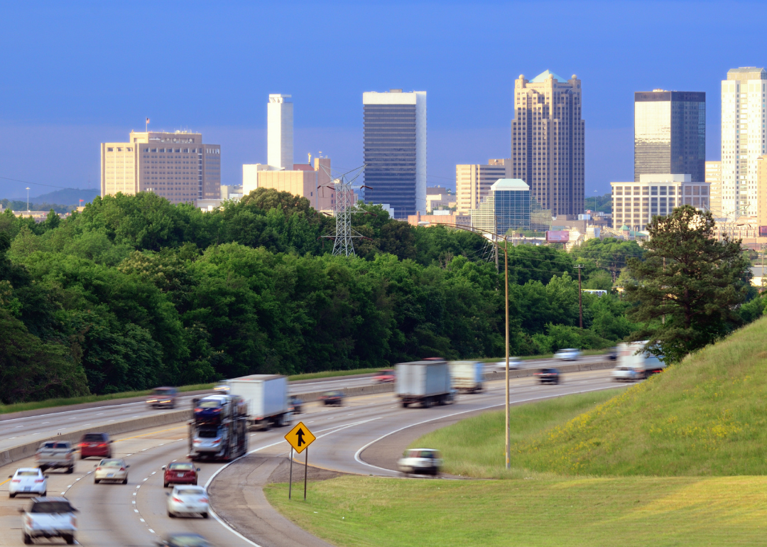 The skyline of Birmingham, Alabama, from above Interstate 65.